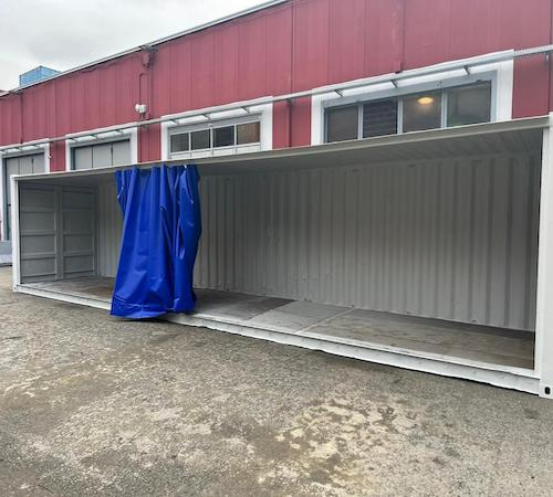 - apertura su lato lungo tramite telone scorrevole oppure su lato corto tramite le porte originali;