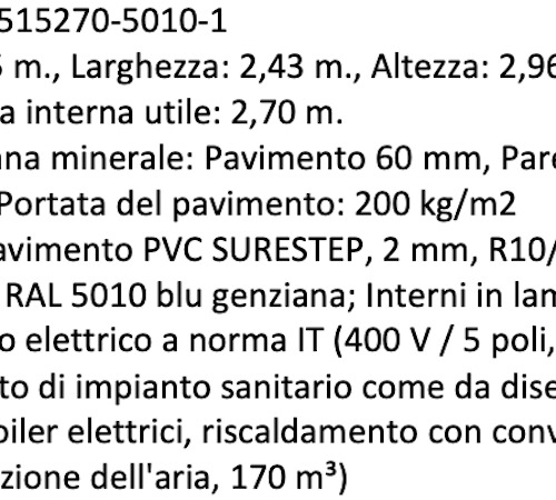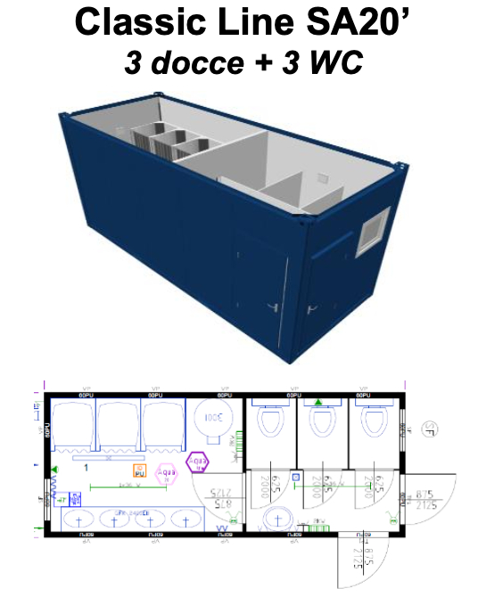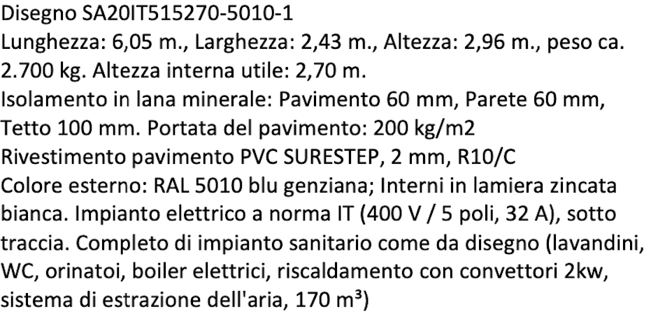 - COMPLETO DI IMPIANTO SANITARIO COME DA DISEGNO (SIFONE, LAVANDINI, WC E ORINATOIO, DOCCIA, BOILER DA 80 LITRI CADAUNO, RISCALDAMENTO CON CONVETTORE 2KW, SISTEMA DI ESTRAZIONE D'ARIA, 170 M3)